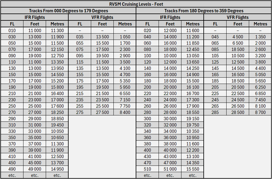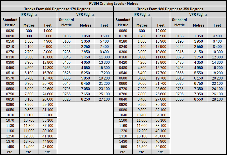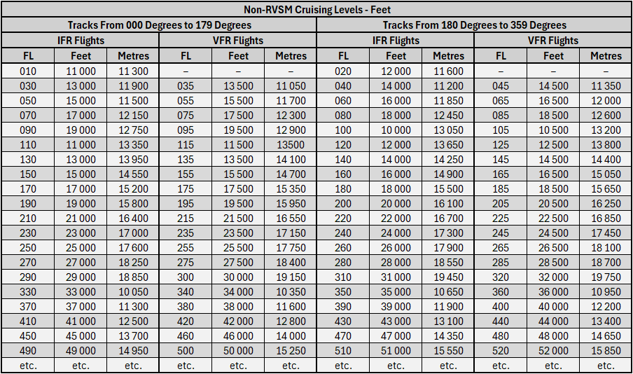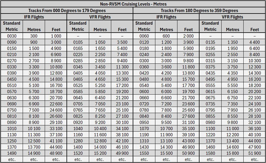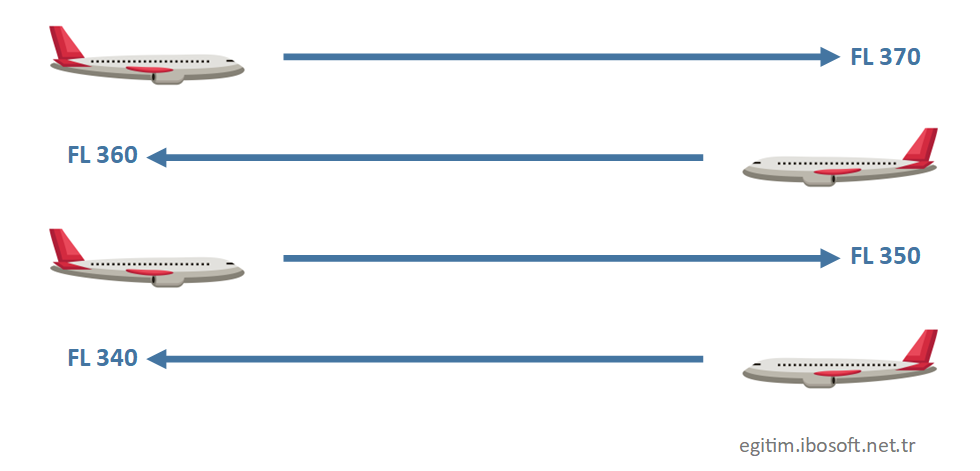 Ancak, burada belirtilen seviye–doğrultu ilişkisi, hava trafik kontrol izinlerinde veya ilgili ATS otoritesi tarafından AIP’lerde aksi belirtilmedikçe uygulanmaz.