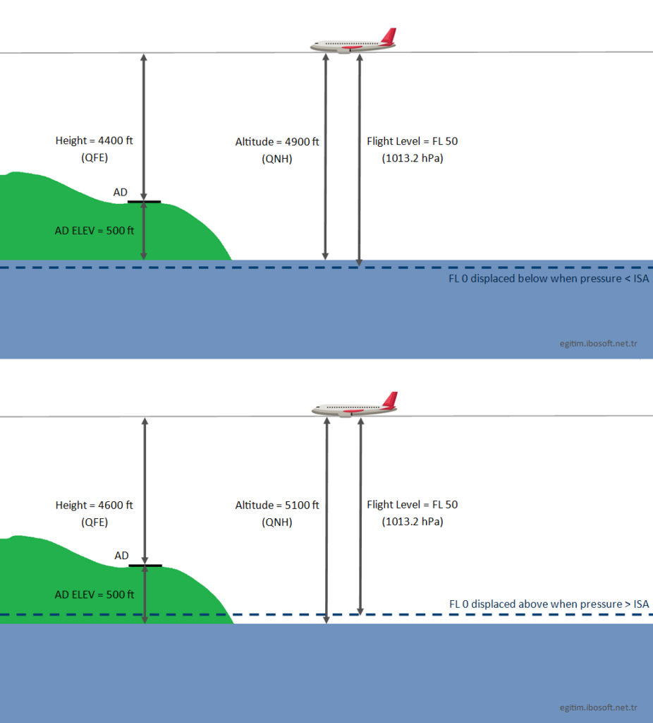 - Yükseklik, irtifa, uçuş seviyesi (FL) kavramları