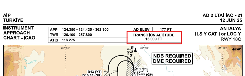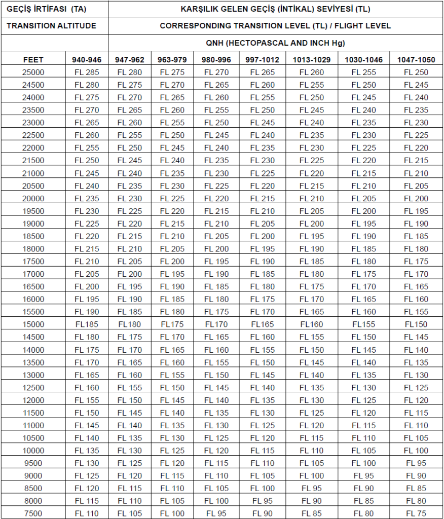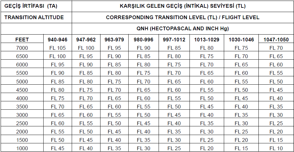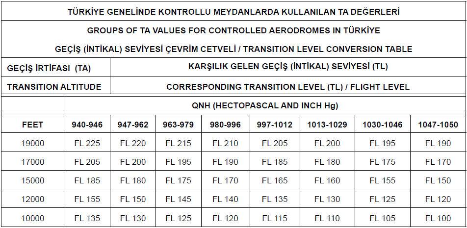 Not: Geçiş seviyesi, normal olarak hava araçlarına yaklaşma ve iniş müsaadeleri sırasında bildirilir.